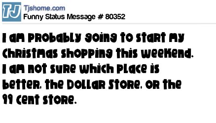 X is I am probably going to start my Christmas shopping this weekend. I am not sure which place is better, the Dollar Store, or the 99 Cent store.