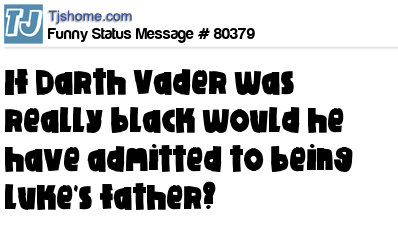 - # 80162 Even though he was voiced by James Earl Jones, Darth Vader definitely wasn't black because he never would have admitted he was Luke's father.