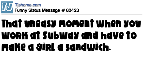 X says That uneasy moment when you work at Subway and have to make a girl a sandwich.