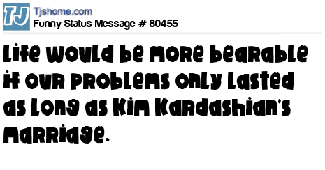 X says Life would be more bearable if our problems only lasted as long as Kim Kardashian's marriage.