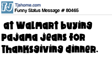 X at Walmart buying pajama jeans for Thanksgiving dinner.