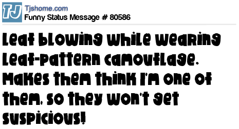 X is Leaf blowing while wearing leaf-pattern camouflage. Makes them think I'm one of them, so they won't get suspicious!