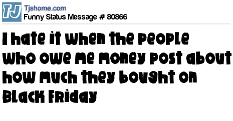 - # 117727 I hate seeing people who owe me money post pics of all they bought on Black friday