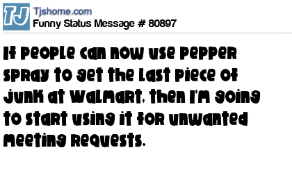 X says If people can now use pepper spray to get the last piece of junk at Walmart, then I'm going to start using it for unwanted meeting requests.