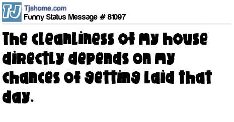 X says The cleanliness of my house directly depends on my chances of getting laid that day.
