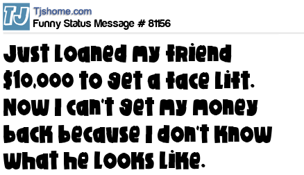 X Just loaned my friend $10,000 to get a face lift. Now I can't get my money back because I don't know what he looks like.