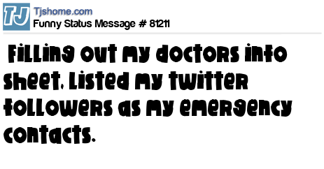 X Filling out my doctors info sheet, listed my twitter followers as my emergency contacts.