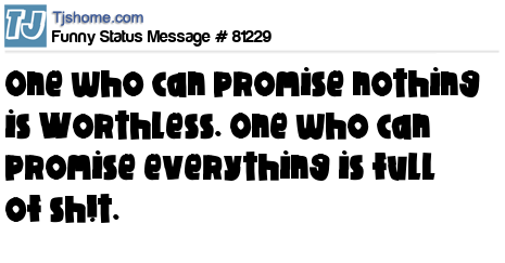 X says One who can promise nothing is Worthless. One who can promise everything is full of sh!t.
