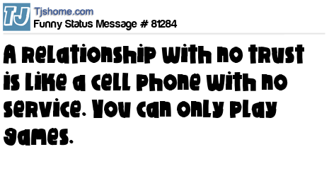 - # 79212 A relationship without trust is like having a phone with no service & what you do with a phone w. no service ? You play games