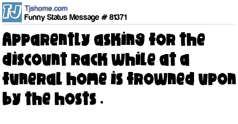 X is Apparently asking for the discount rack while at a funeral home is frowned upon by the hosts .
