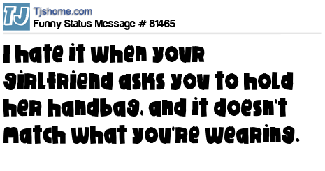 - # 84926 217. I hate it when you go out on a date with a girl and she asks to hold her purse and it doesn't match your shoes.