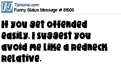 X is If you get offended easily, I suggest you avoid me like a redneck relative.