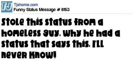 X stole this status from a homeless guy, why he had a status that says this, I'll never know!