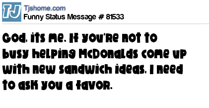 X says God, its me. If you're not to busy helping McDonalds come up with new sandwich ideas, I need to ask you a favor.