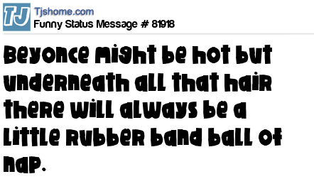 - # 122678 Beyonce might be hot but underneath all thatt hair there will always be a little rubber band ball of nap.