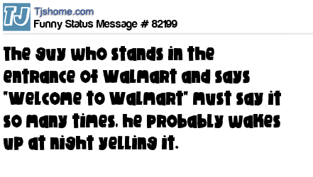 X The guy who stands in the entrance of Walmart and says "Welcome to Walmart" must say it so many times, he probably wakes up at night yelling it.