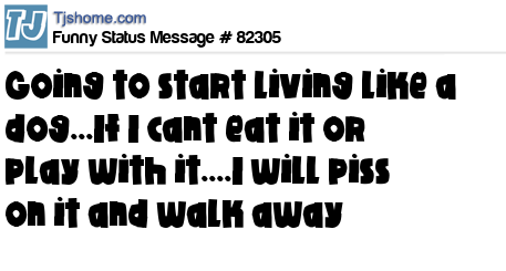 X is Going to start living like a dog...If I cant eat it or play with it....I will piss on it and walk away