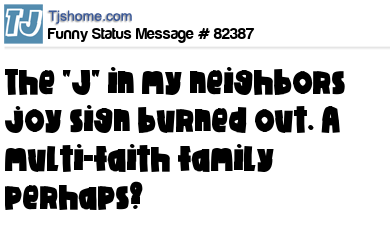 X The "J" in my neighbors joy sign burned out. A multi-faith family perhaps?