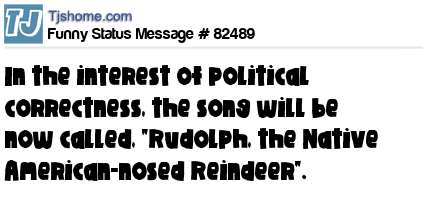 X In the interest of political correctness, the song will be now called, "Rudolph, the Native American-nosed Reindeer".