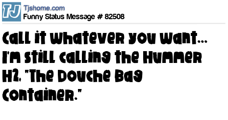 X says Call it whatever you want... I'm still calling the Hummer H2, "The Douche Bag Container."