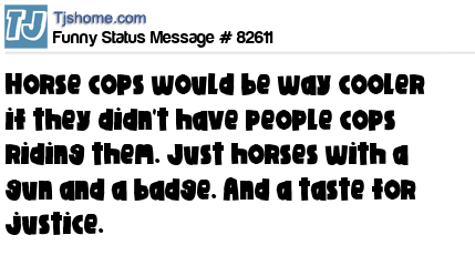 X says Horse cops would be way cooler if they didn't have people cops riding them. Just horses with a gun and a badge. And a taste for justice.
