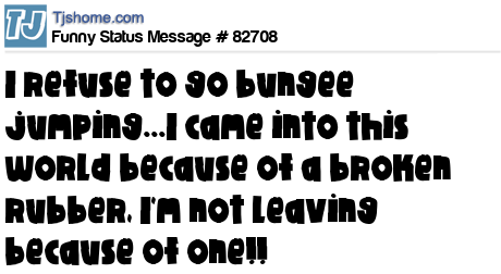 - # 67089 I refuse to go bungee jumping...I came into this world because of a broken rubber, I'm not leaving because of one.