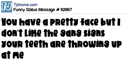 X says You have a pretty face but I don't like the gang signs your teeth are throwing up at me