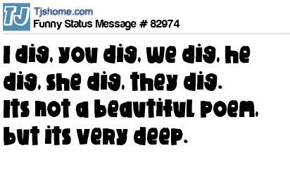 X I dig, you dig, we dig, he dig, she dig, they dig. Its not a beautiful poem, but its very deep.