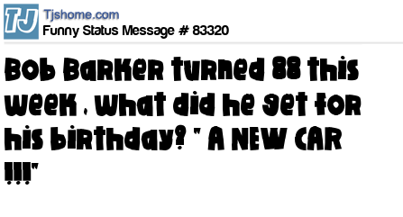 X says Bob Barker turned 88 this week , what did he get for his birthday? " A NEW CAR !!!"