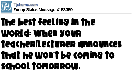 X says The best feeling in the world: When your teacher/lecturer announces that he won't be coming to school tomorrow.