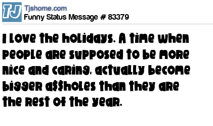 X I love the holidays. A time when people are supposed to be more nice and caring, actually become bigger a$$holes than they are the rest of the year.