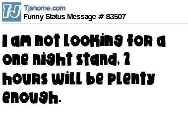 X says I am not looking for a one night stand, 2 hours will be plenty enough.