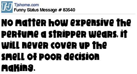 X says No matter how expensive the perfume a stripper wears, it will never cover up the smell of poor decision making.