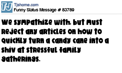 X We sympathize with, but must reject any articles on how to quickly turn a candy cane into a shiv at stressful family gatherings.