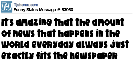 X is It's amazing that the amount of news that happens in the world everyday always just exactly fits the newspaper