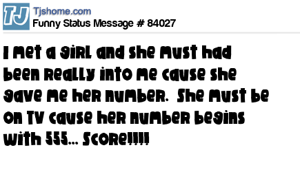 X is I met a girl and she must had been really into me cause she gave me her number. She must be on TV cause her number begins with 555... Score!!!!