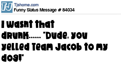 X is I wasnt that drunk...... "Dude, you yelled Team Jacob to my dog!"