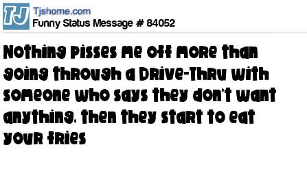 X is Nothing pisses me off more than going through a Drive-Thru with someone who says they don't want anything, then they start to eat your fries