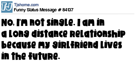 X is No, I'm not single. I am in a long distance relationship because my girlfriend lives in the future.