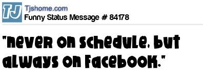 X is "never on schedule, but always on Facebook."