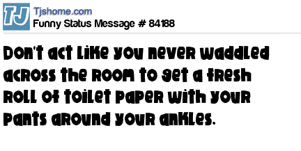 X says Don't act like you never waddled across the room to get a fresh roll of toilet paper with your pants around your ankles.
