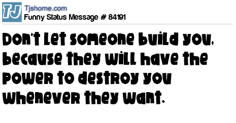 X says Don't let someone build you, because they will have the power to destroy you whenever they want.