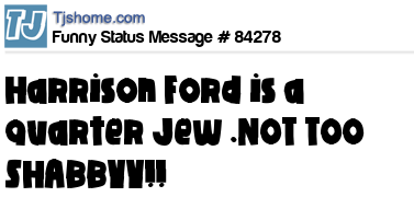 X says Harrison Ford is a quarter Jew .NOT TOO SHABBYY!!