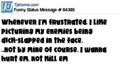- # 99419 ..Whenever I'm frustrated, I like picturing my enemies being d!ck-slapped in the face. ..not by mine of course. I wanna hurt em, not kill em..(",)