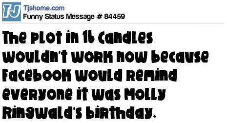 X The plot in 16 Candles wouldn't work now because Facebook would remind everyone it was Molly Ringwald's birthday.