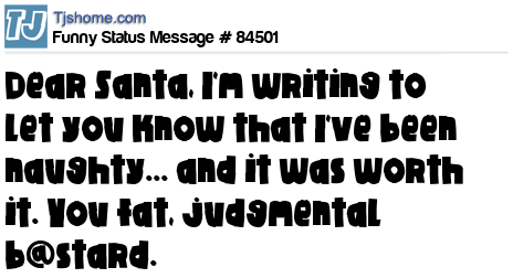 - # 173407 Dear Santa, yea I was naughty this year ..and it was worth it, you fat, judgmental b*stard!