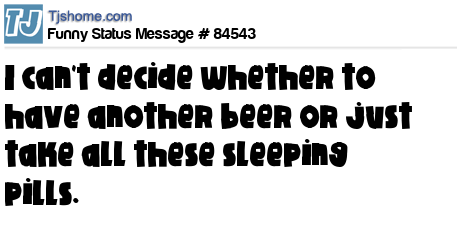 X I can't decide whether to have another beer or just take all these sleeping pills.