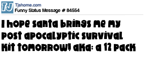 X i hope santa brings me my post apocalyptic survival kit tomorrow! aka: a 12 pack