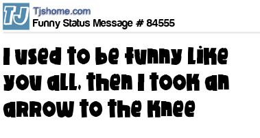 - # 84559 I was good at studies tilll I took an arrow to the knee...now I get by with the physically handicapped quota