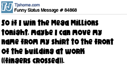 X So if I win the Mega Millions tonight, maybe I can move my name from my shirt to the front of the building at work ((fingers crossed)).